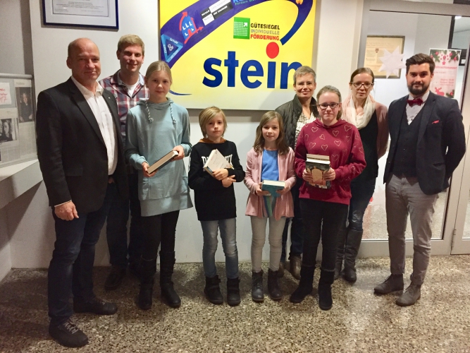 Neben diesen Grundlagen vermittelt der Deutschunterricht am „Stein“ doch noch so viel mehr: In der Klasse 5 geht es vom Umgang mit der Bibliothek über sachliches Berichten zu Märchen und Gedichten, später in der Sekundarstufe I werden Fabeln behandelt und Lektüren gelesen, die Bedeutung der Medien hinterfragt, es wird argumentiert, Lebensläufe werden verfasst, Songtexte gestaltet, Dramen gelesen und Szenen gespielt, Zeitungen untersucht und die Funktion der Sprache kritisch beleuchtet. In der Oberstufe, besonders in der Qualifikationsphase, werden dann vor allem die zentral vorgegebenen Themen behandelt, die u.a. exemplarische Einblicke in die Epochen anhand von Sachtexten, Dramen, Gedichten, Novellen und Romanen ermöglichen.