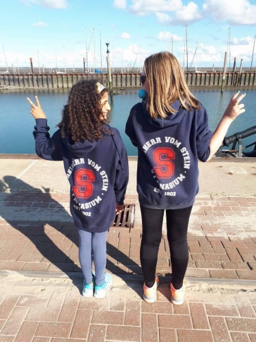 Falls du dich nun den Schülern und Lehrern anschließen willst, die bereits mit großen Erfolg die Schule repräsentieren, kannst du einen Pulli oder ein T-Shirt beim Hausmeister erwerben.